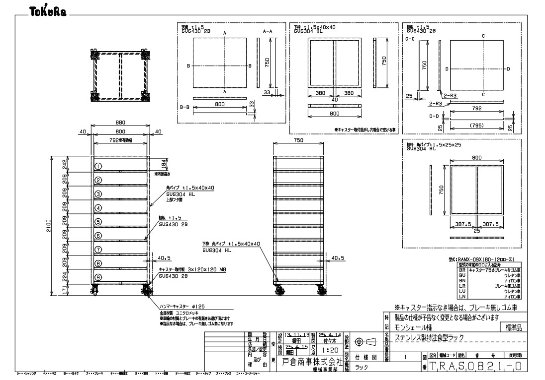 ・材質:本体SUS304、棚板SUS430